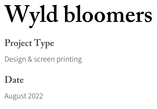 We recently collaborated with Ellie from Wyld Bloomers to create a custom print for her handmade undies. Ellie is a talented seamstress who creates ethical and comfortable underwear, and she reached out to us to collaborate and create a custom screen printed repeat pattern. We love working with other ethical companies and are thrilled to have partnered with Wyld Bloomers on this project.